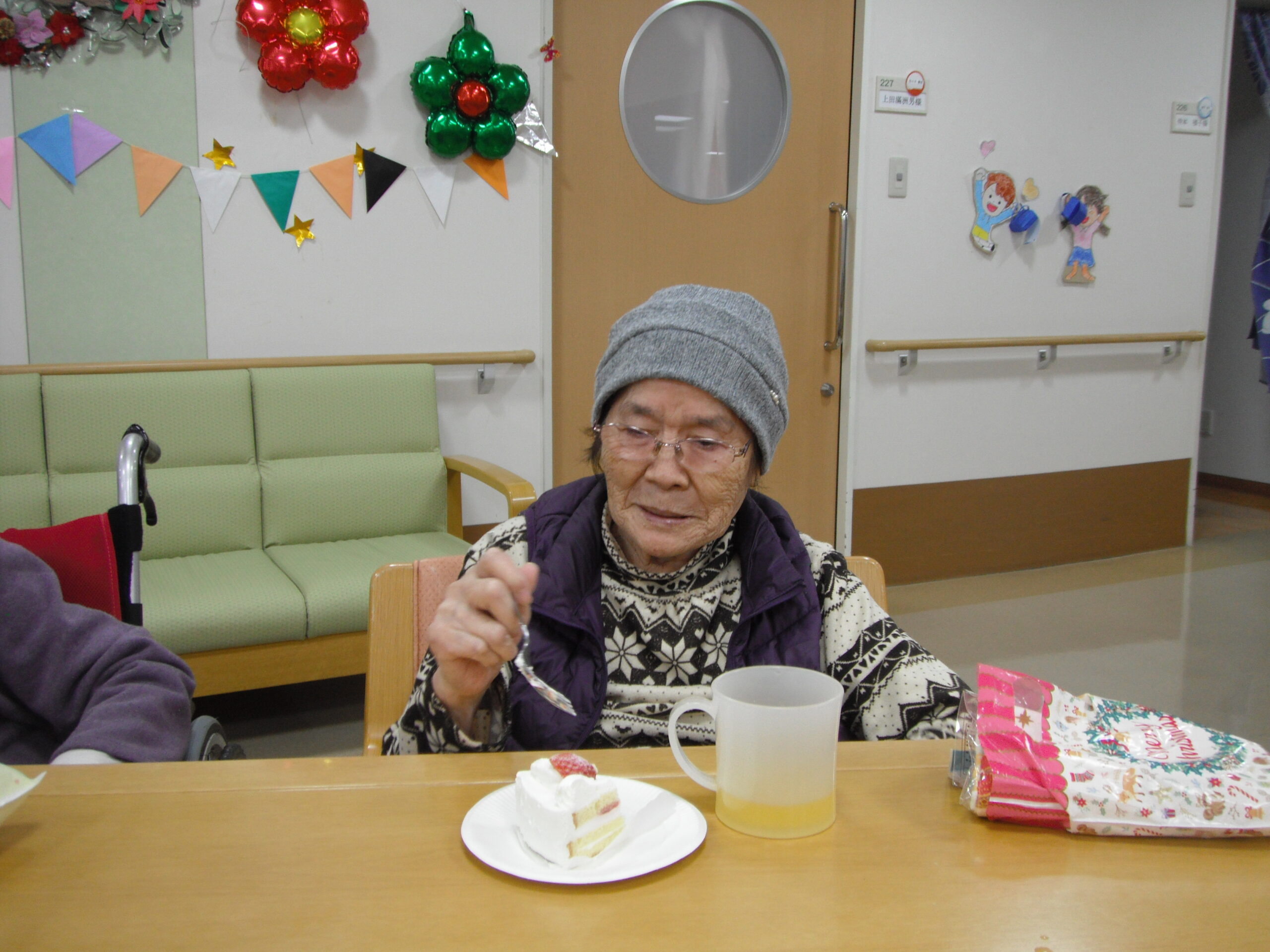 おやつにはクリスマスケーキを頂き、楽しい一日となりました。