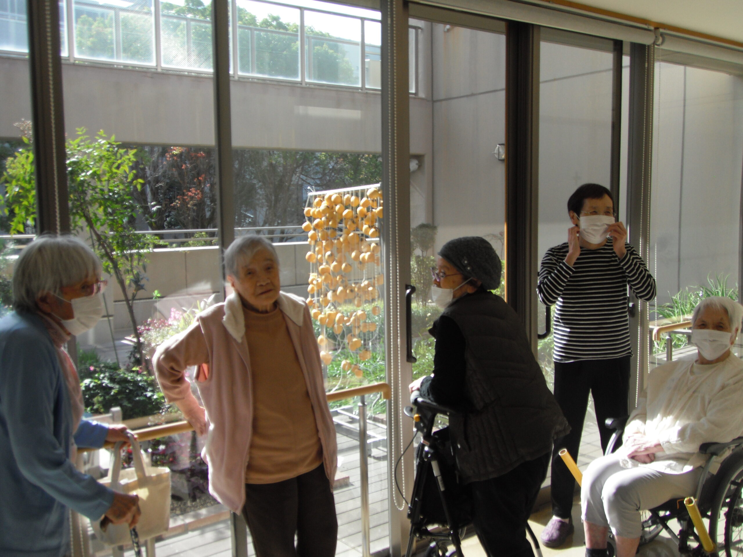 3Fにある干し柿を見に行きました。「美味しそう!天気もいいし皆で見れて良かった!」と思いながら見ていました(^O^)