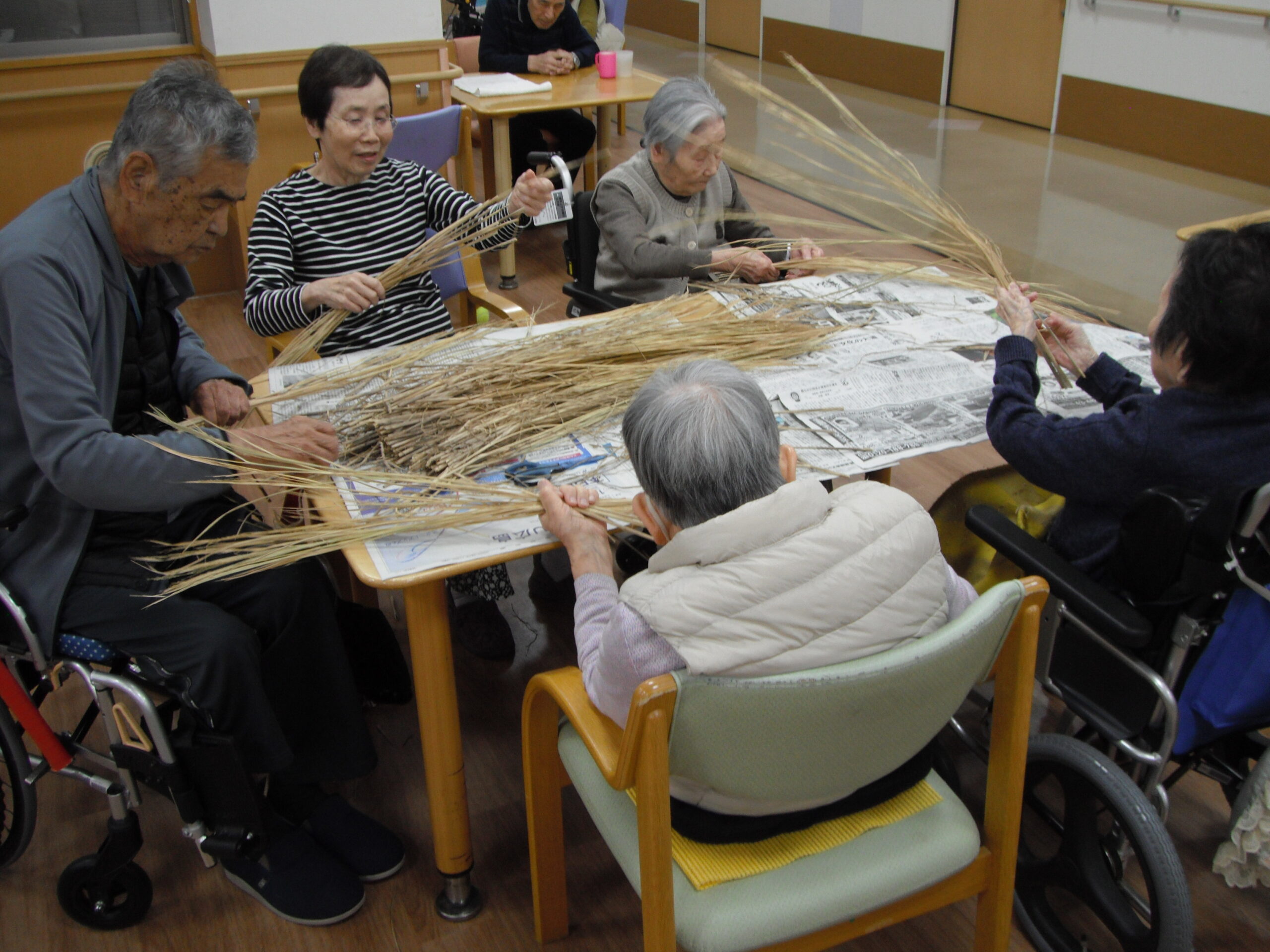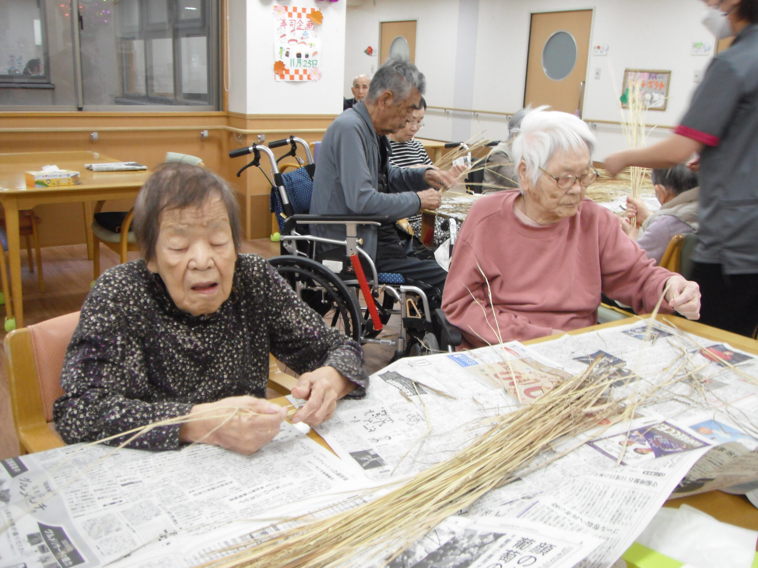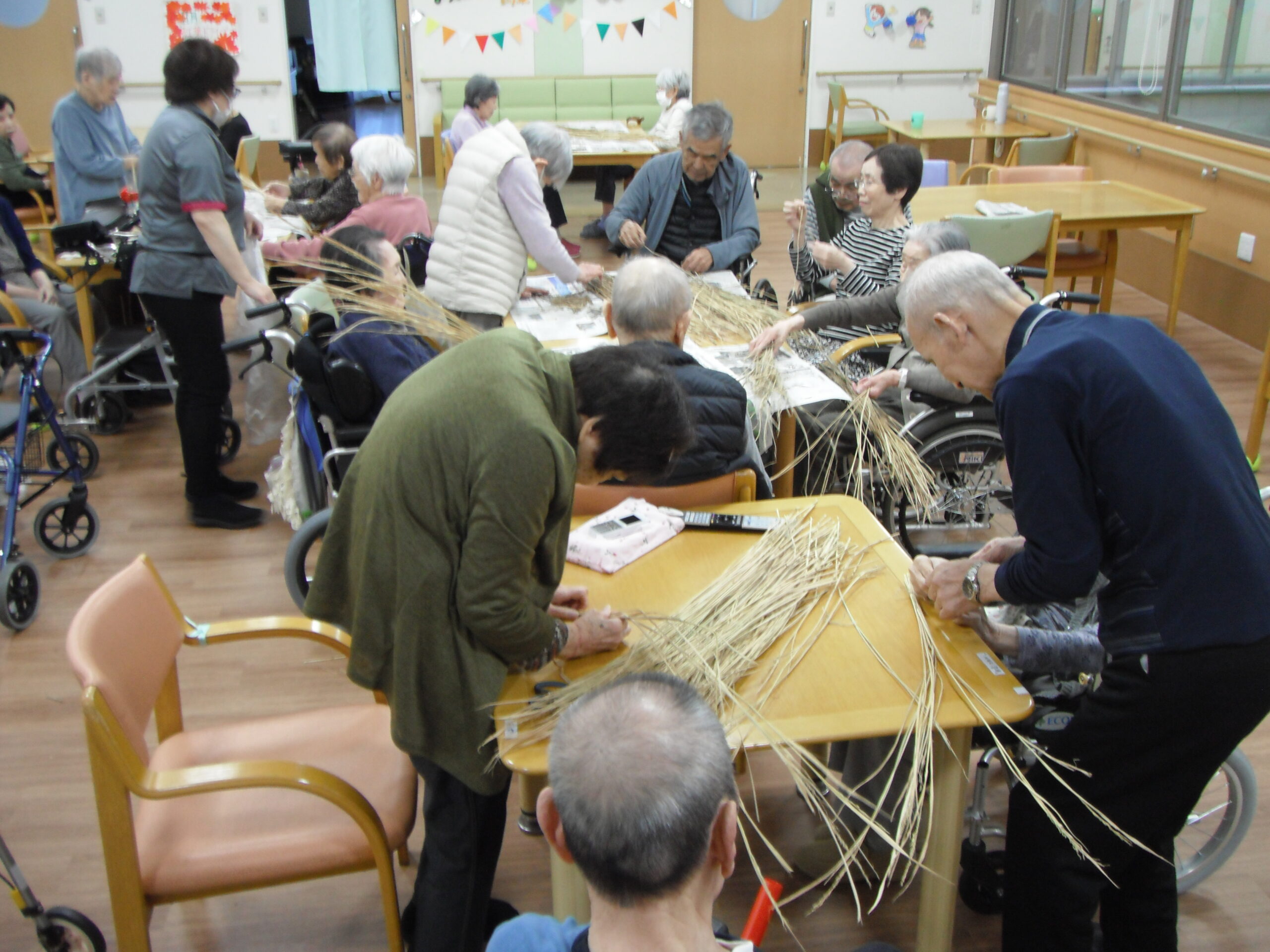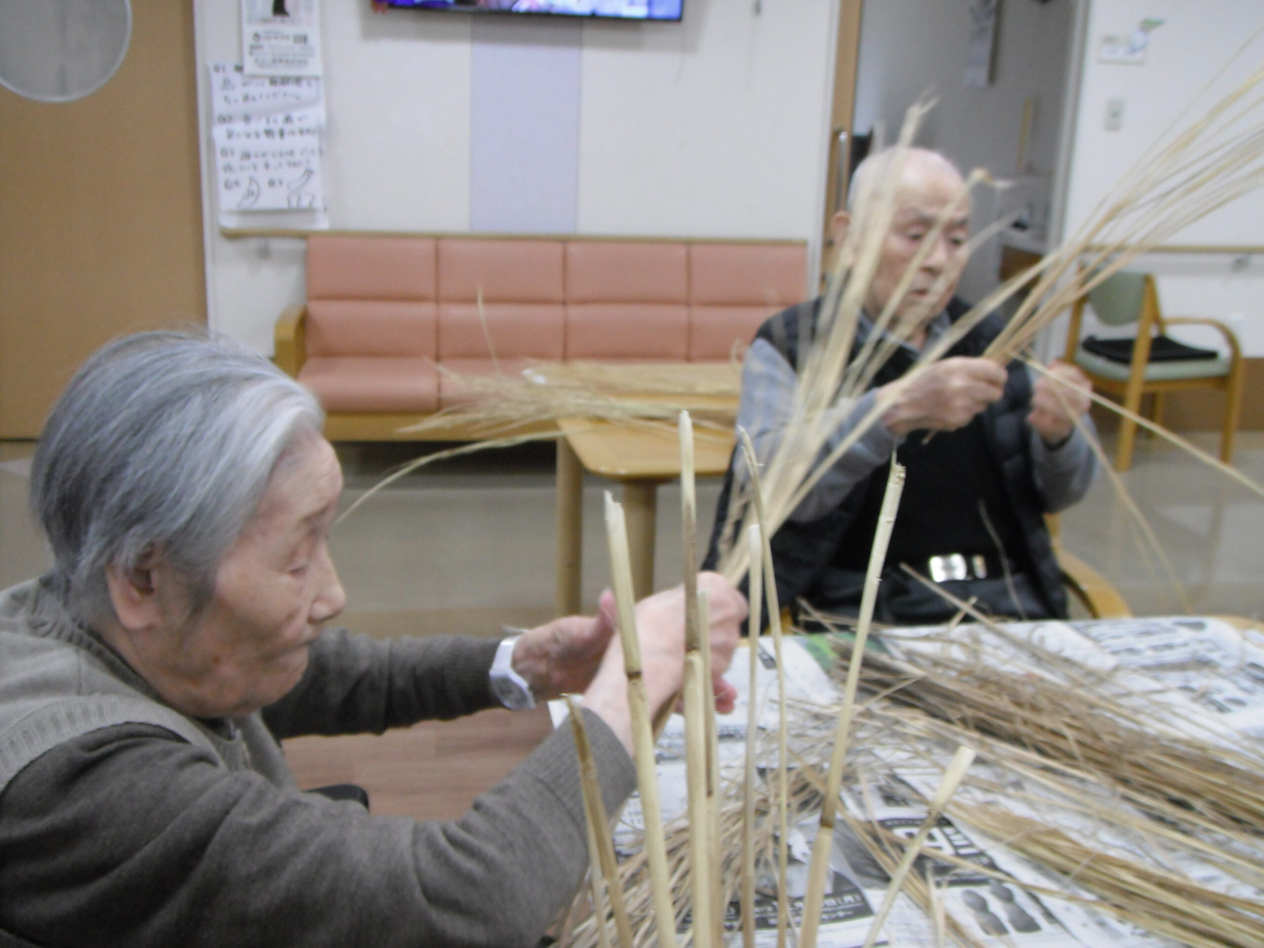 正解は、しめ縄作りです。真剣に編んでいます(*^-^*)