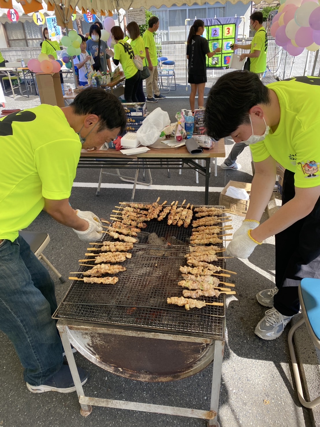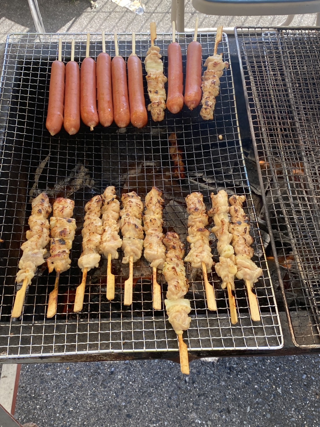 我々事務所は、焼き鳥、フランクフルト、ぷち大福を販売。炭火焼きです。