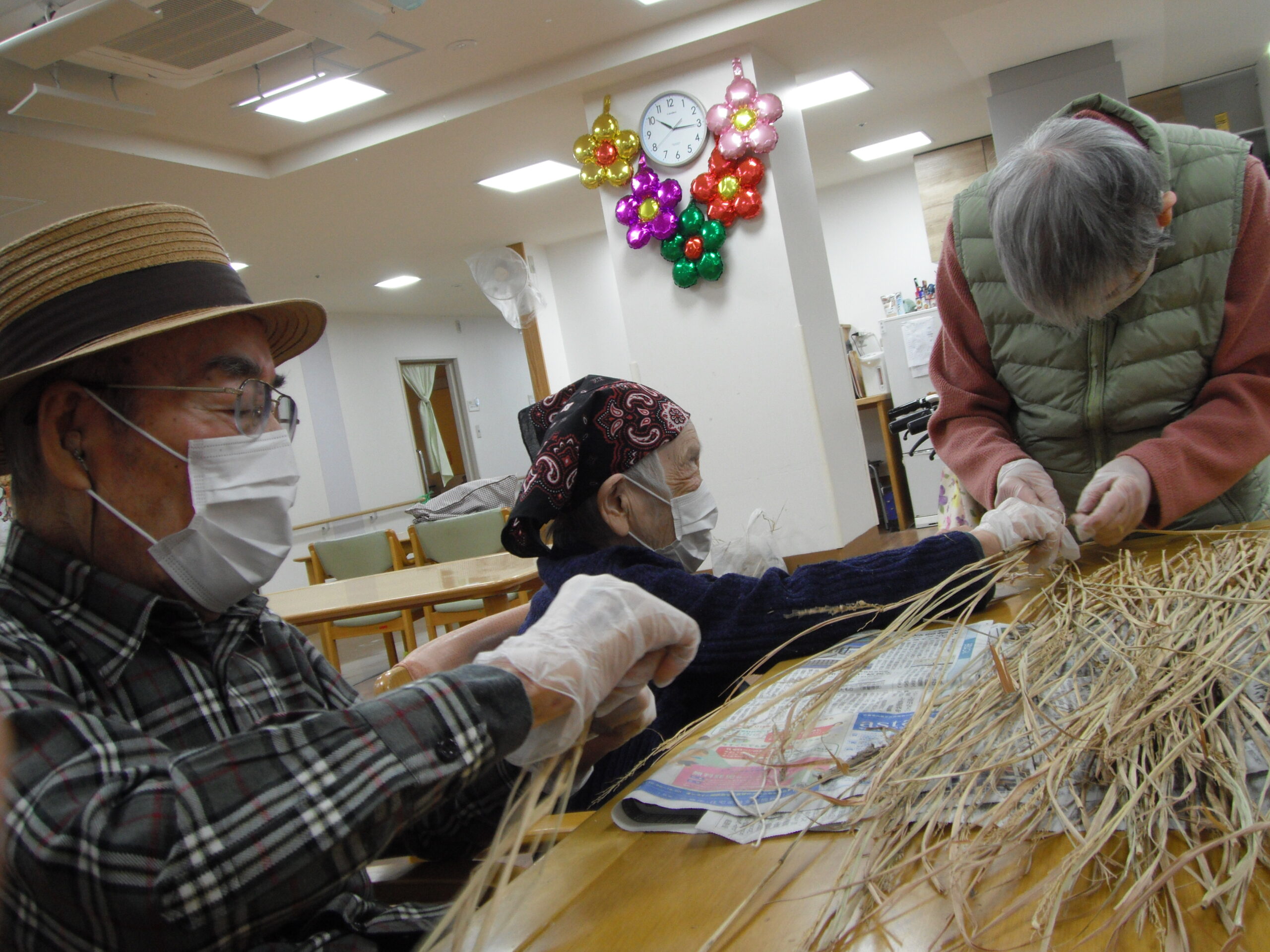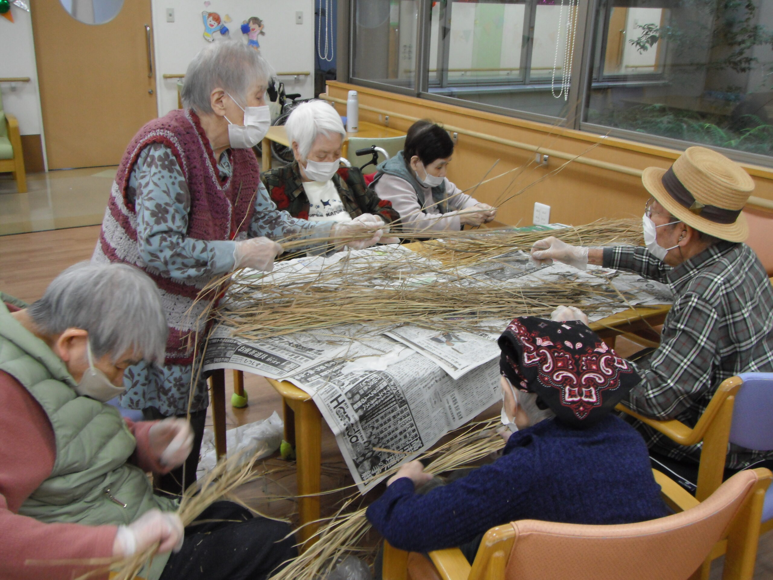 今年最後に皆様と協力し合い!(^^)! しめ縄作りをしてみました!