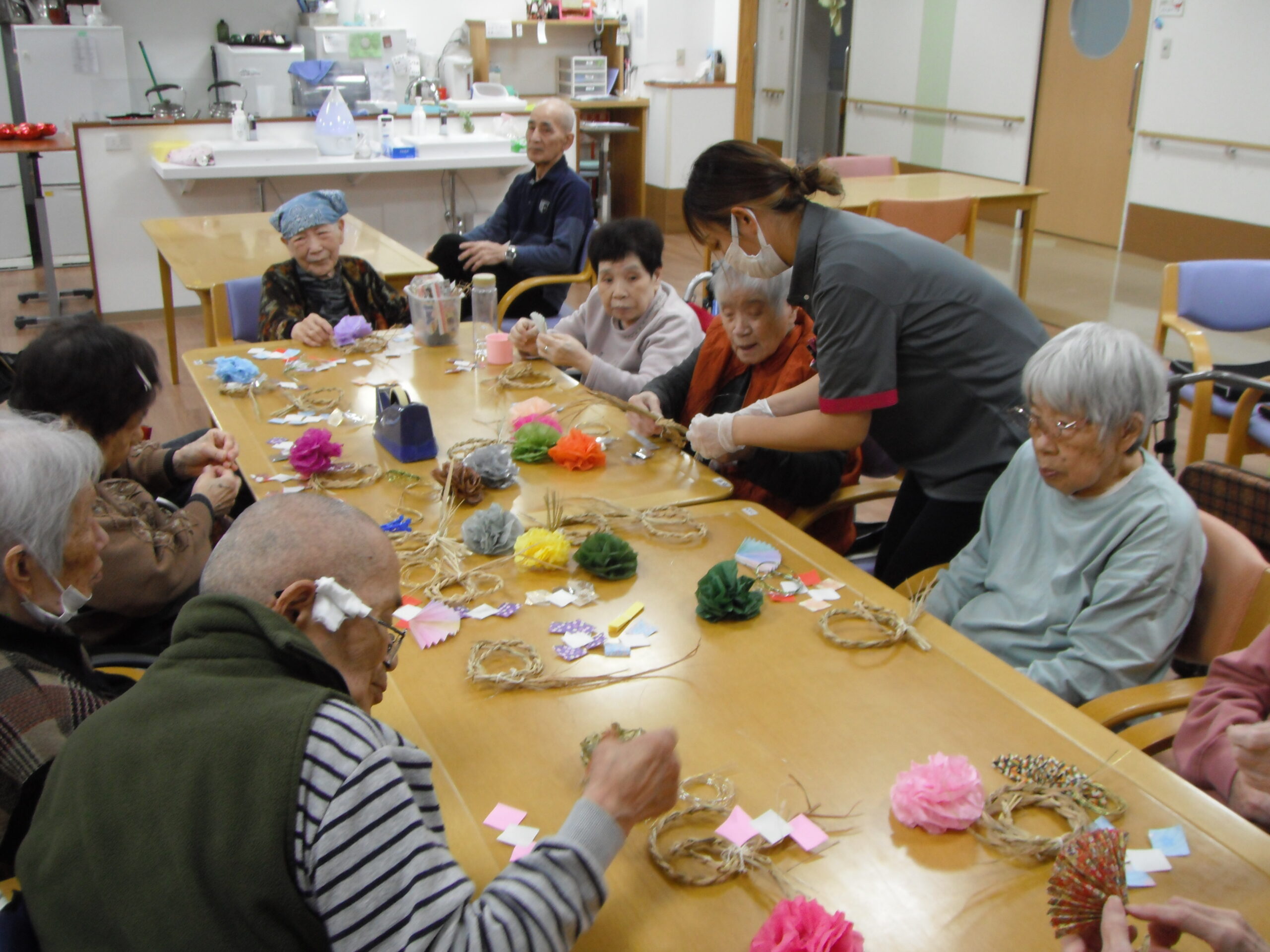 しめ縄用の飾りも🌸皆さん細かい作業も真剣に行っています(^^♪