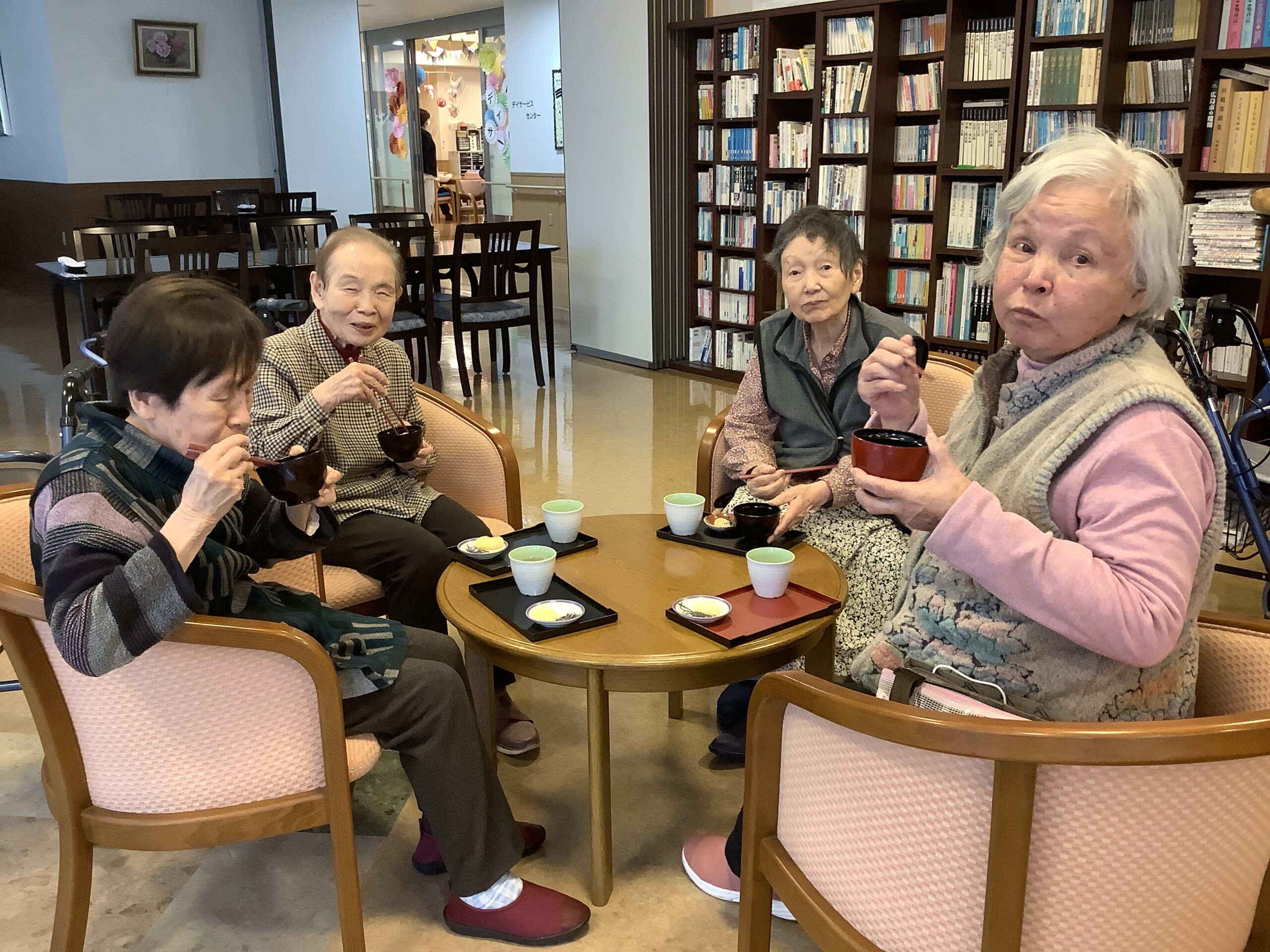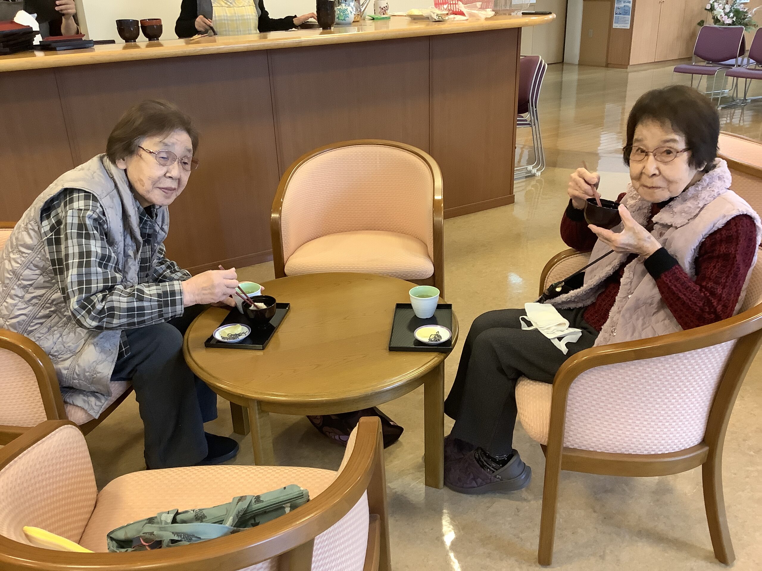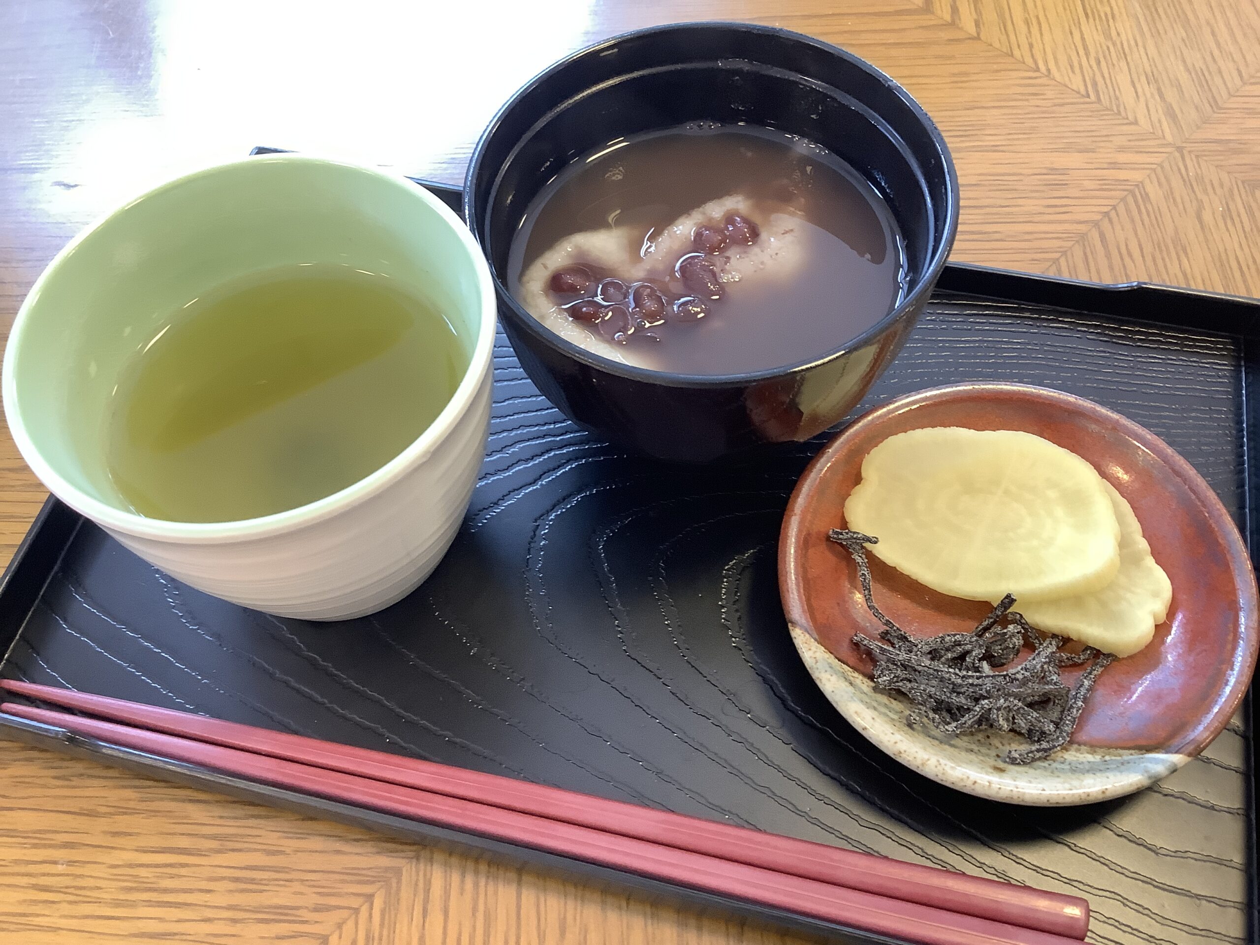 先日鏡開きしたお餅をぜんざいにして皆様に提供しました。