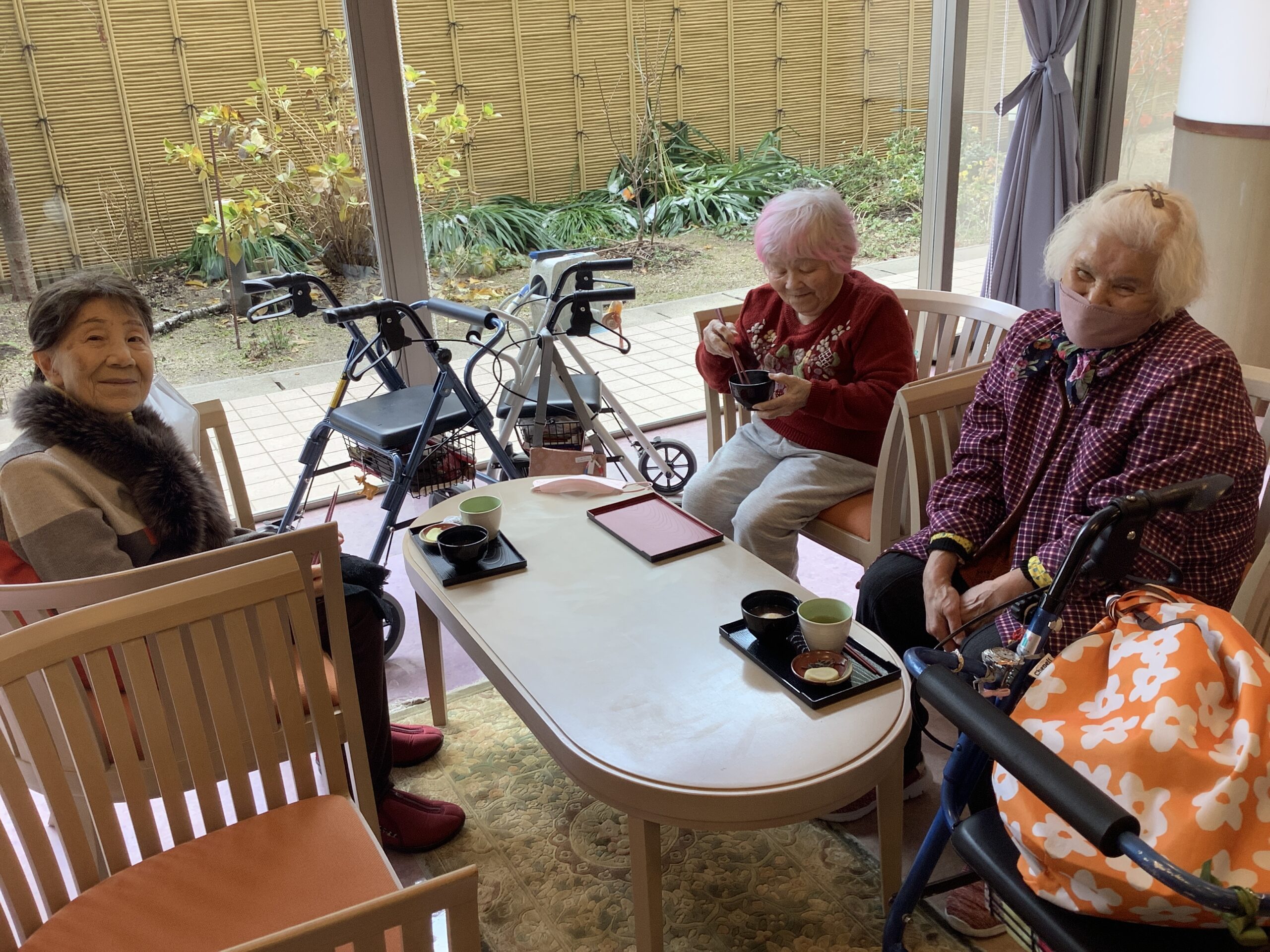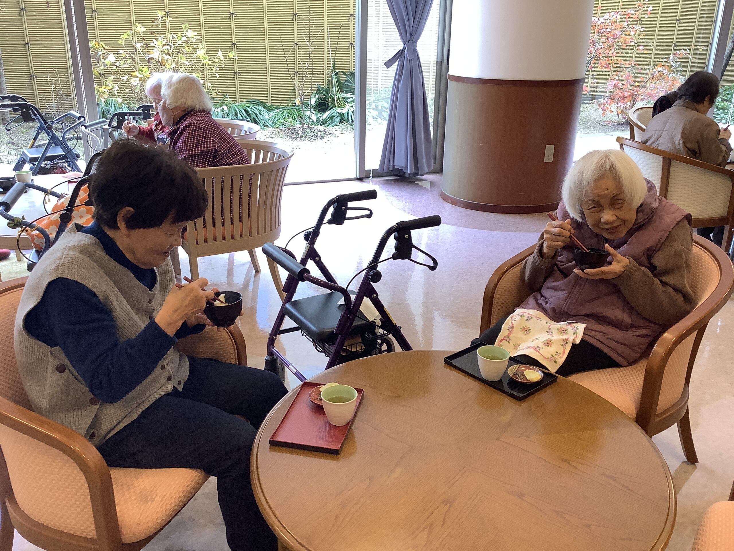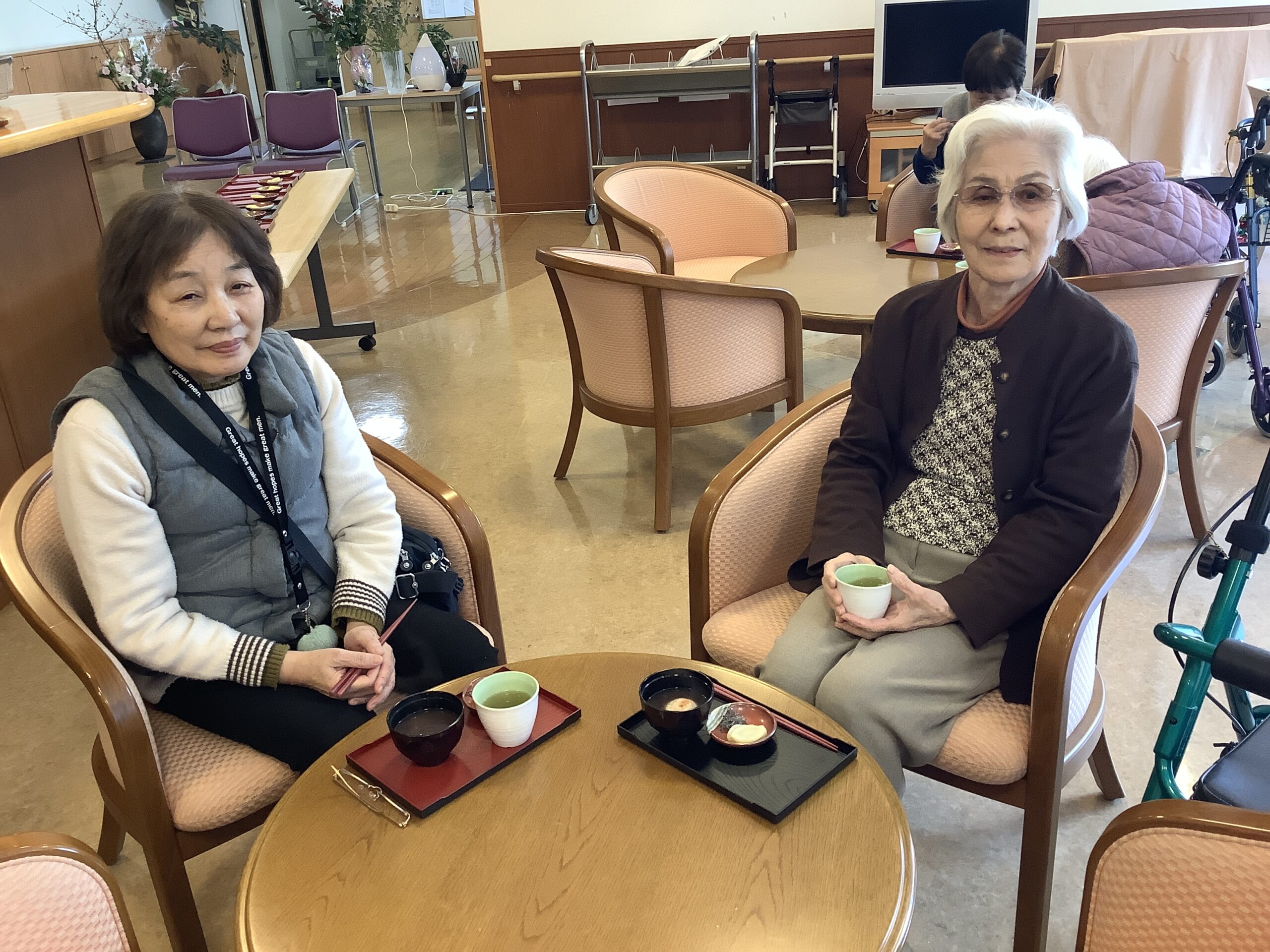 先日鏡開きしたお餅をぜんざいにして皆様に提供しました。