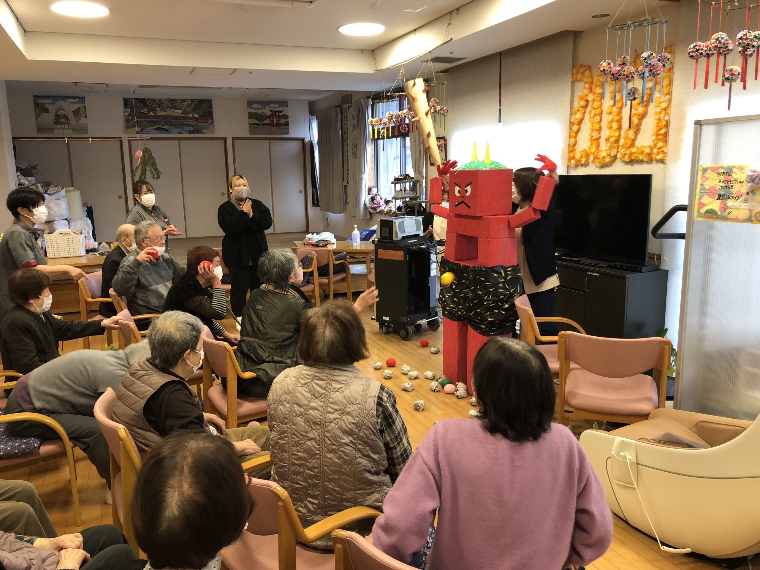 こんにちわ。デイサービスです。今日は2月3日に行われた節分イベントについてご紹介します。