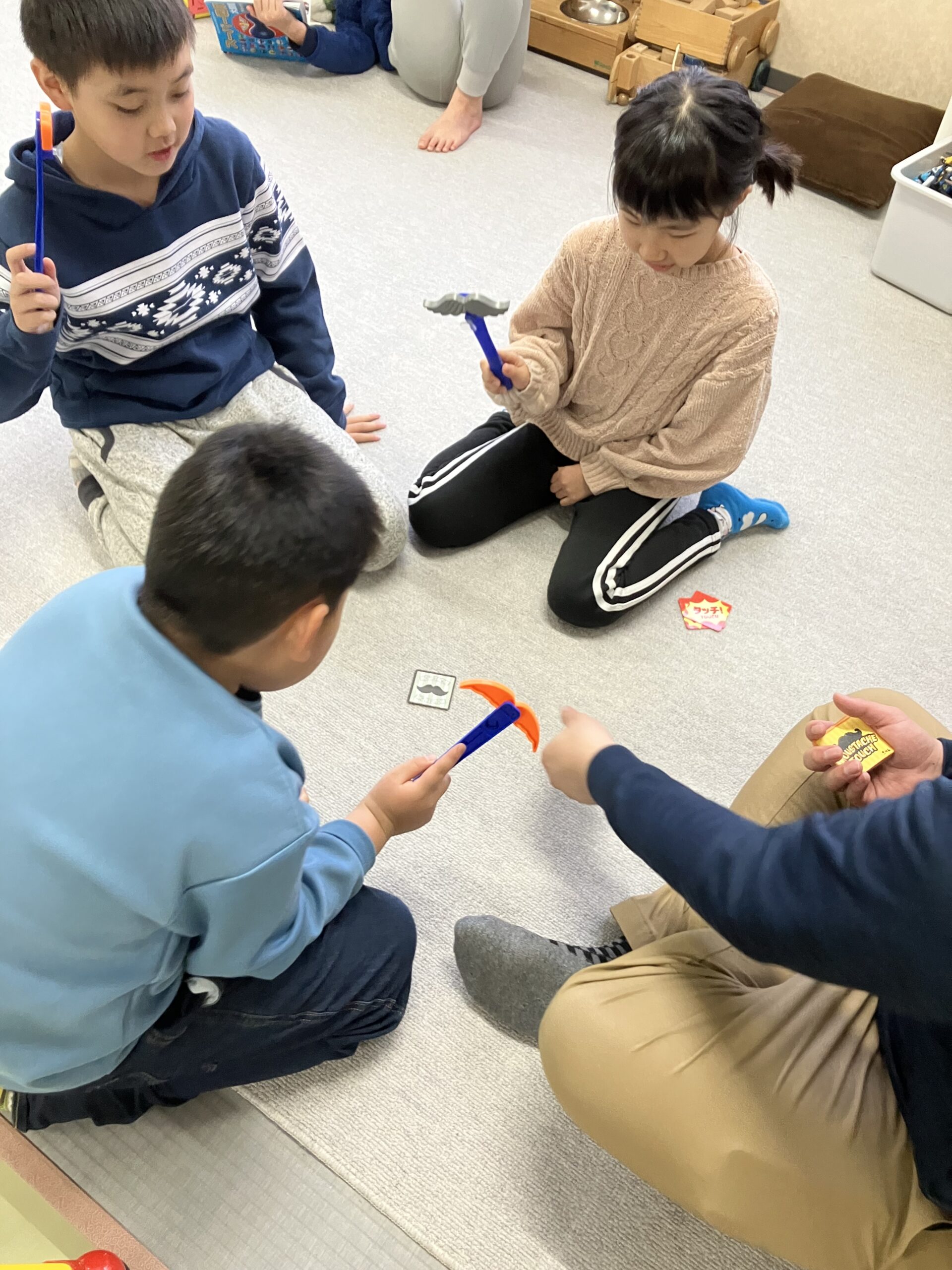 休憩中には、お友達と集まり、いろんな遊びを楽しみ笑い声も