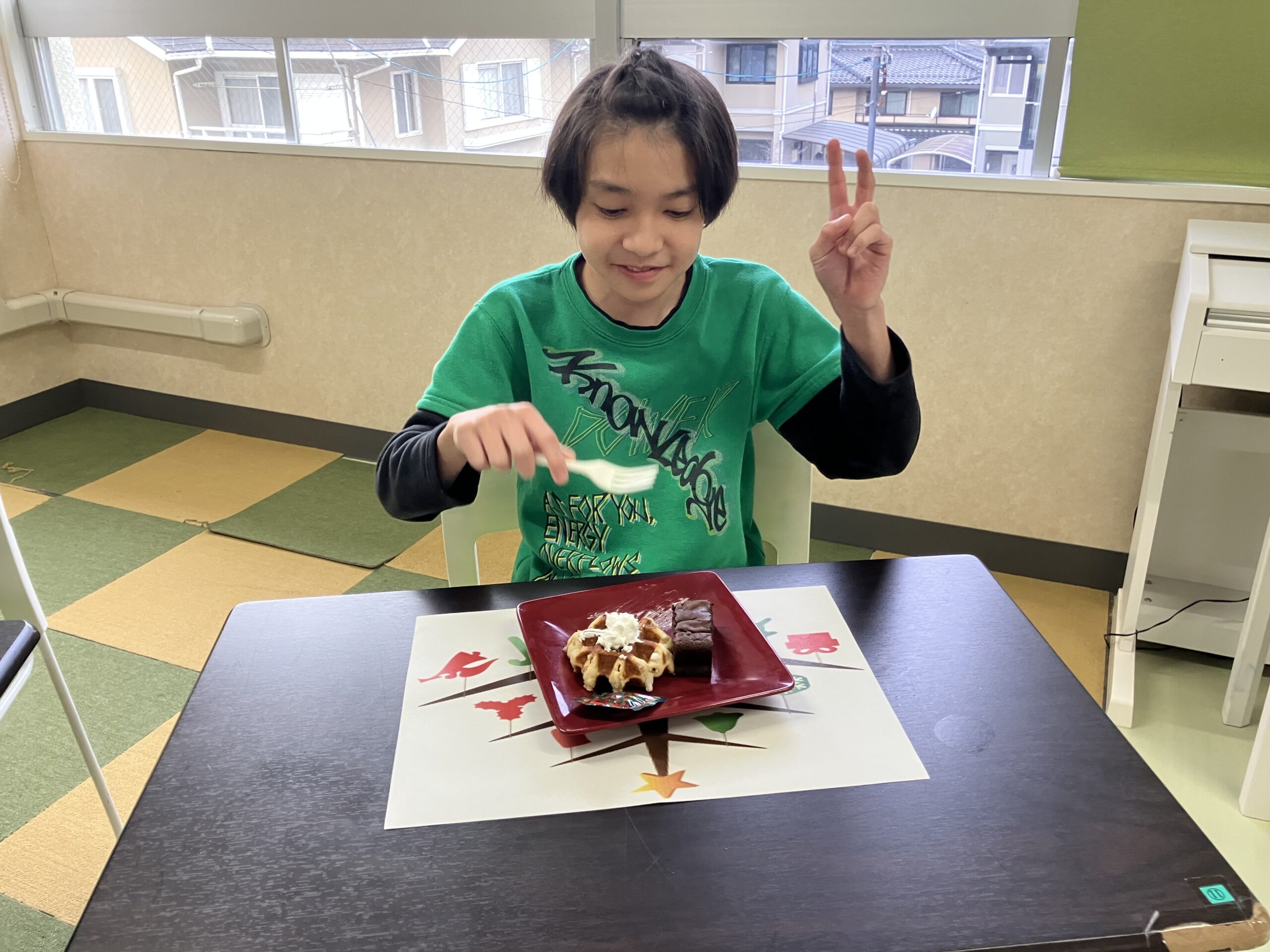 おやつでは、スフレとベルギーワッフル…おいしく食べていましたよ✨