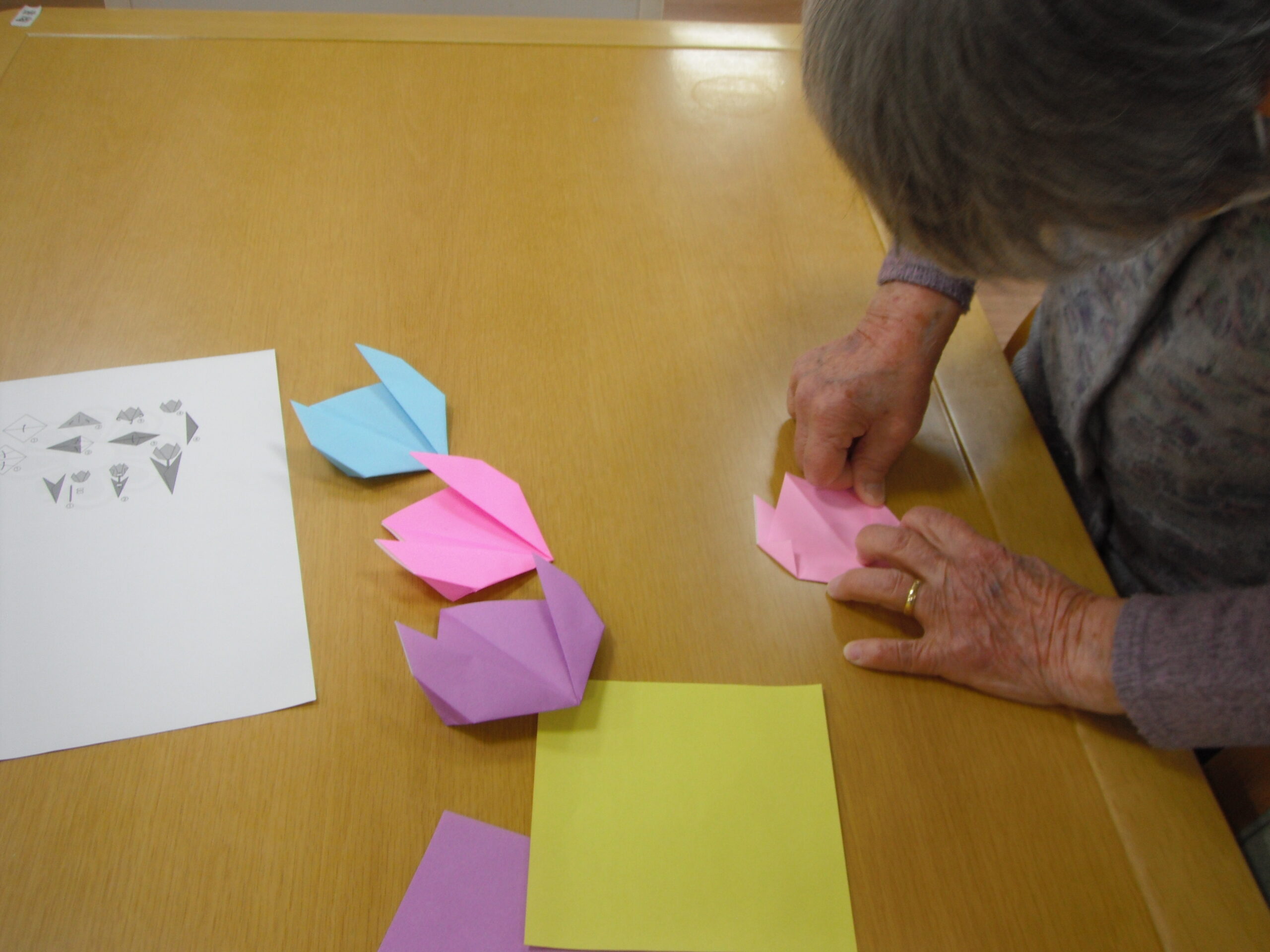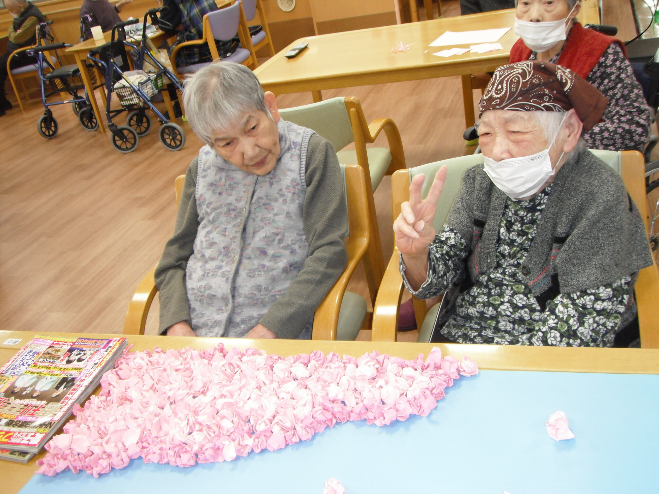 入居者の皆さんはとても手先が器用です。折り紙で何を作っているかと言うと。