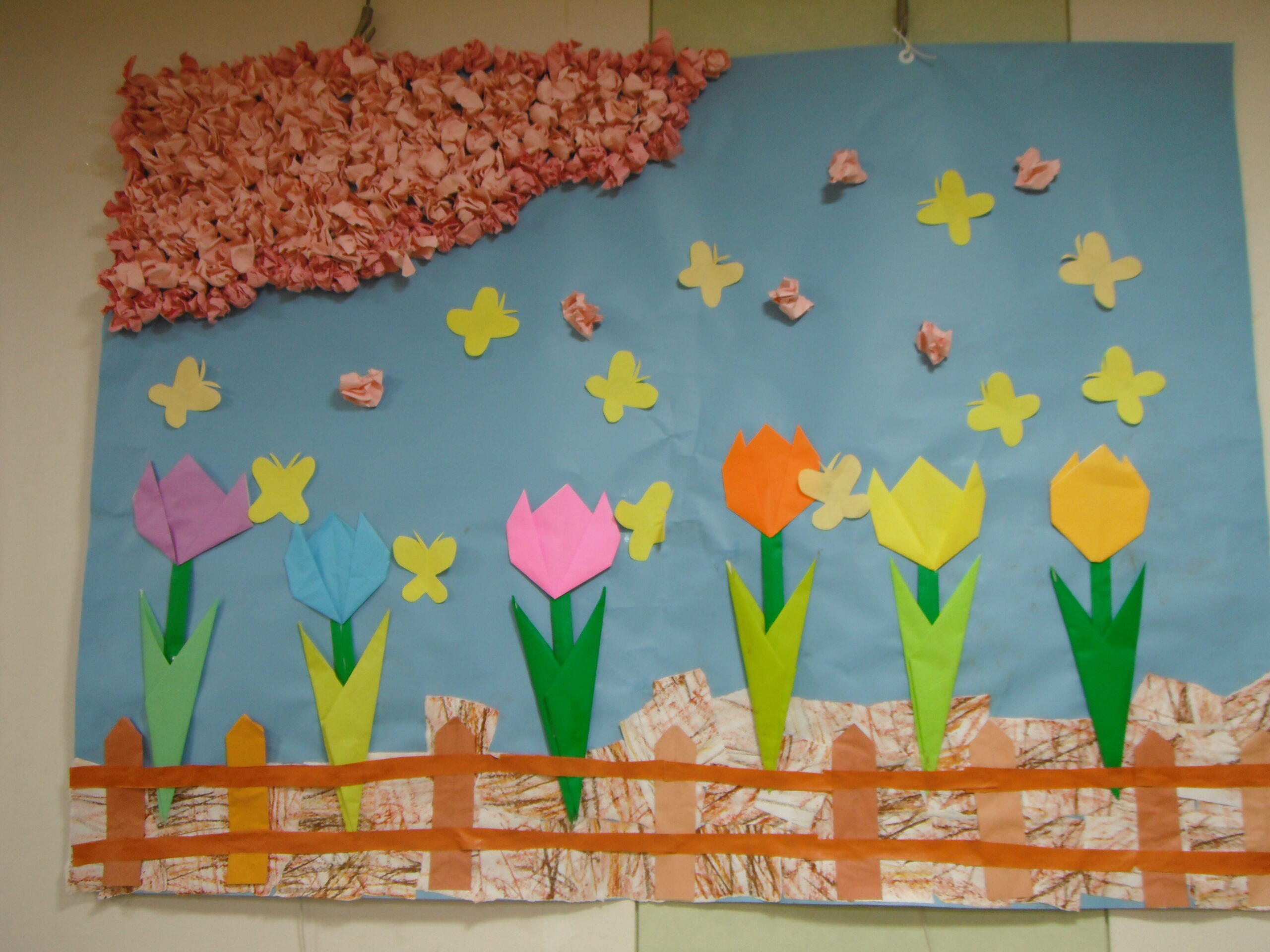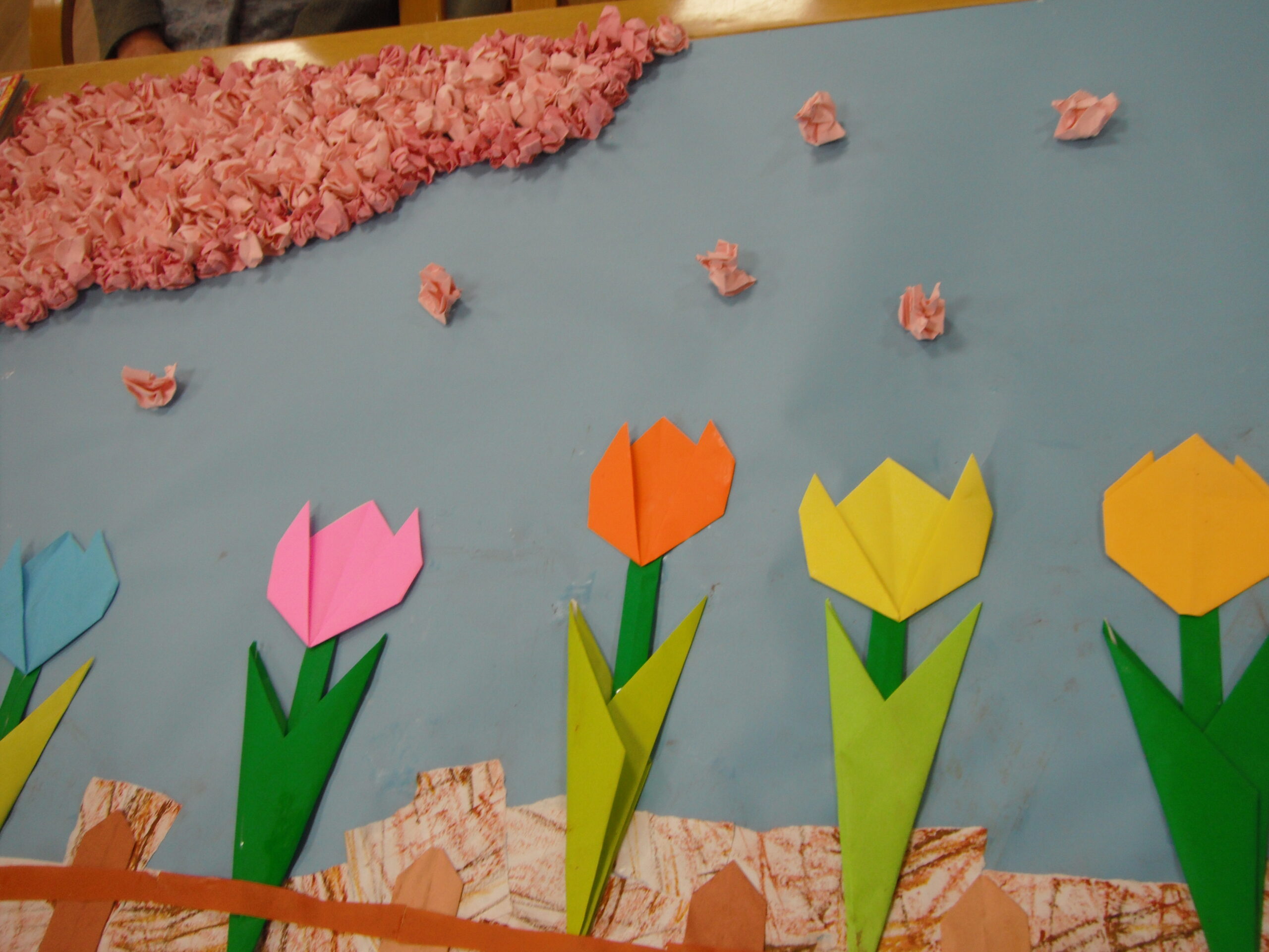 壁画完成しました!! チューリップの花壇そして桜が咲いてます。春らしい♪